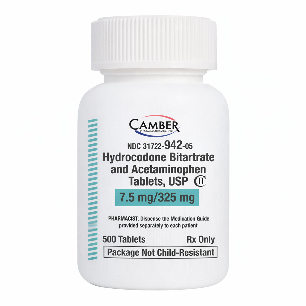 Norco 7.5-325 mg is a prescription opioid combination analgesic designed to manage moderate to significant acute pain. The medication combines hydrocodone bitartrate (7.5 mg), which acts on the central nervous system to reduce pain perception, with acetaminophen (325 mg), which helps block pain signals and enhances overall pain relief. This balanced formulation allows effective pain control while keeping acetaminophen at a safer dose per tablet.